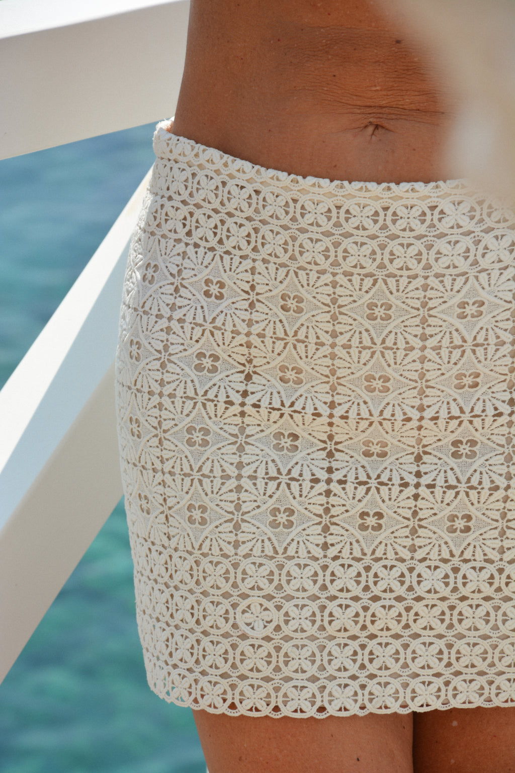 A fitted mini skirt crafted from floral-patterned cotton lace, with a soft inner lining for coverage and comfort. Featuring a back zip closure and a slightly structured silhouette, it's an easy piece to elevate your summer wardrobe with a nostalgic, handmade feel. Made from vintage embroidered cotton.